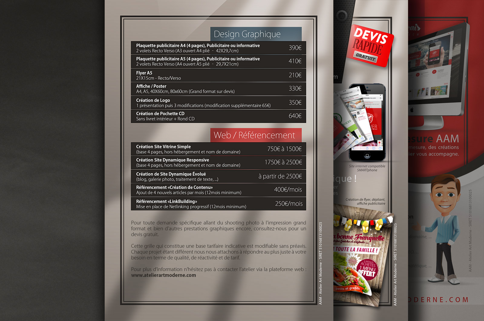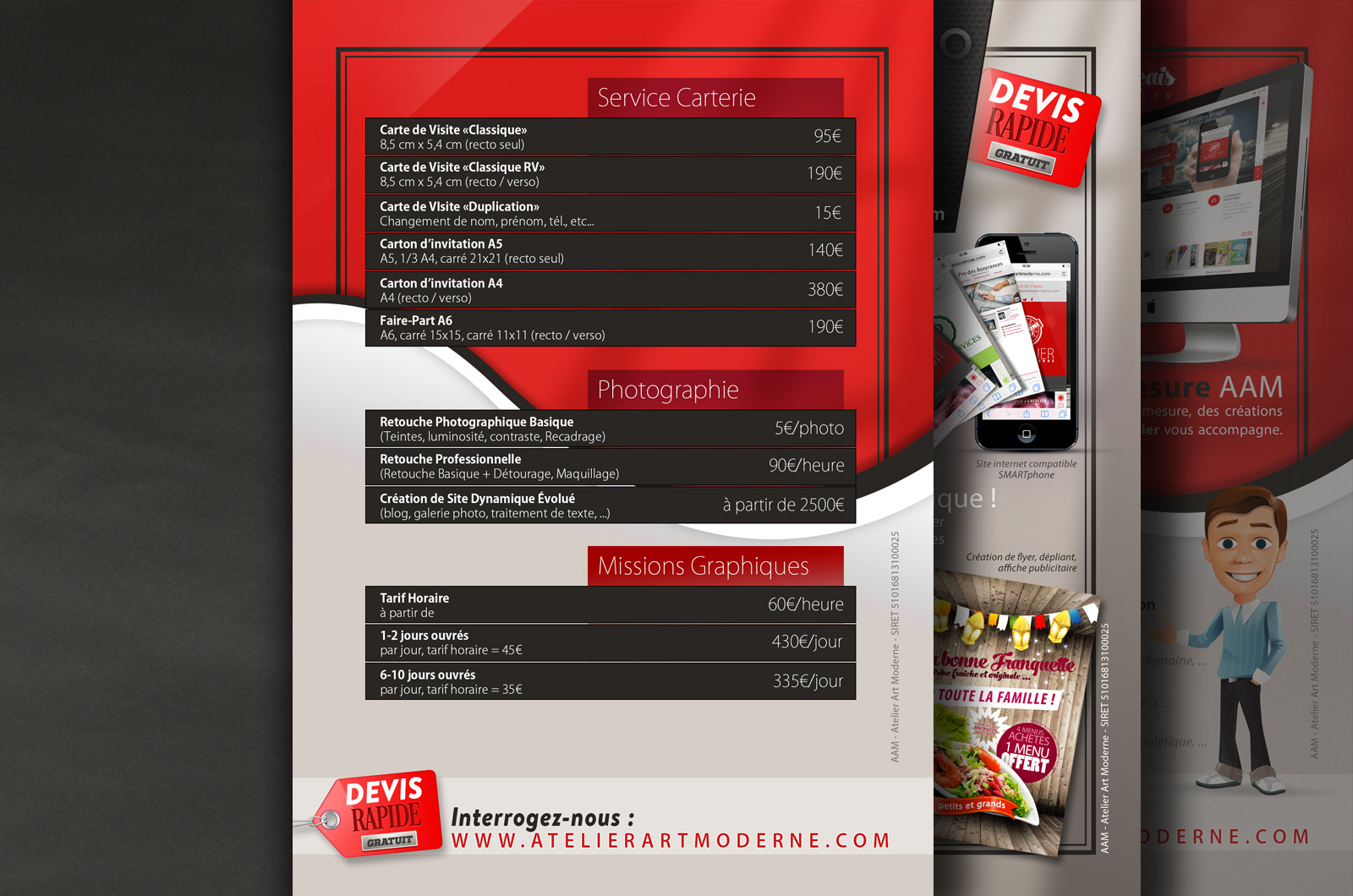 Pour toute demande spécifique allant du shooting photo à l’impression grand format et bien d’autres prestations graphiques encore, consultez-nous pour un devis gratuit.